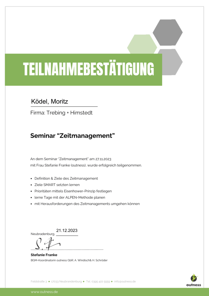 • Zeitmanagement: strukturierte Planung und effiziente Priorisierung